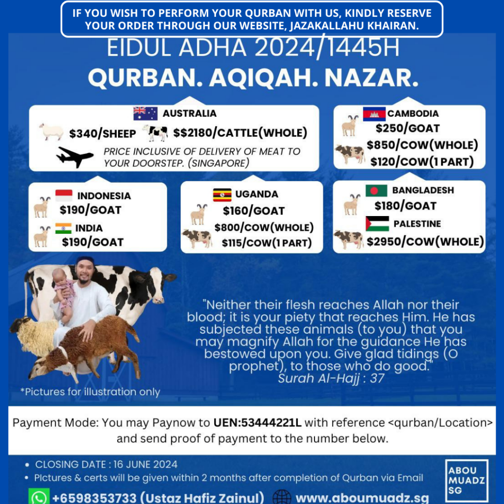 The word Qurban originates from the Arabic root word “qaruba” which means closeness or being close. Performing Qurban is an act of ibadah as to be closer to Allah S.W.T in appreciation of the many blessings and abundance bestowed upon us as mentioned in surah Al-Kauthar 108:2